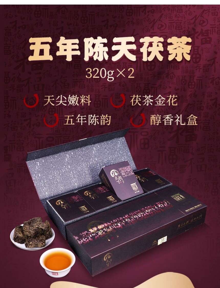 湖南正宗安化黑茶白沙溪五年陳福天下直泡320g盒