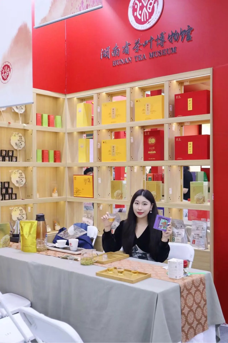 整個展位像個“湘茶小集市”:年輕人愛扎堆的茶守藝在這兒,能試喝湖南茉莉奶茶,茶禮五折起,冰激凌第二支半價,玩投茶游戲還能贏茶香薰;旁邊湖南茶葉博物館很適合慢慢看,答茶題換文創(chuàng)扇、胸章,試喝國色天香紅茶,順便漲知識。