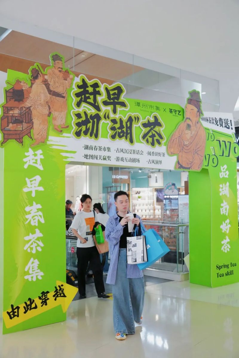 在春茶上新之際,茶守藝特別策劃了湖南首個古風茶市主題“趕早,沏湖茶”,運用以古作新的手段方式,聯合中心印象城潭州市集,進一步促活中青年群體茶飲市場,賦予古老湖南茶嶄新的生命力。