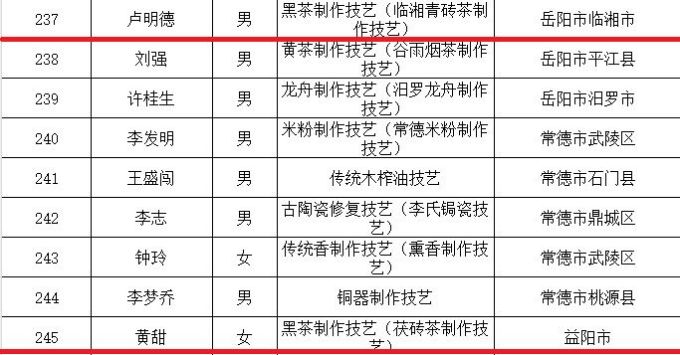 近期,湖南省文化和旅游廳發布《關于公布第五批省級非物質文化遺產項目代表性傳承人的通知》,集團3人入選。其中,集團公司副董事長、總工程師吳浩人榮獲第五批省級非物質文化遺產項目紅茶制作技藝(湖南工夫紅茶制作技藝)傳承人稱號;集團益陽茶廠質管部經理黃甜榮獲第五批省級非物質文化遺產項目黑茶制作技藝(茯磚茶制作技藝)傳承人稱號;集團永巨茶業董事、總工程師盧明德榮獲第五批省級非物質文化遺產項目黑茶制作技藝(臨湘青磚茶制作技藝)傳承人稱號。