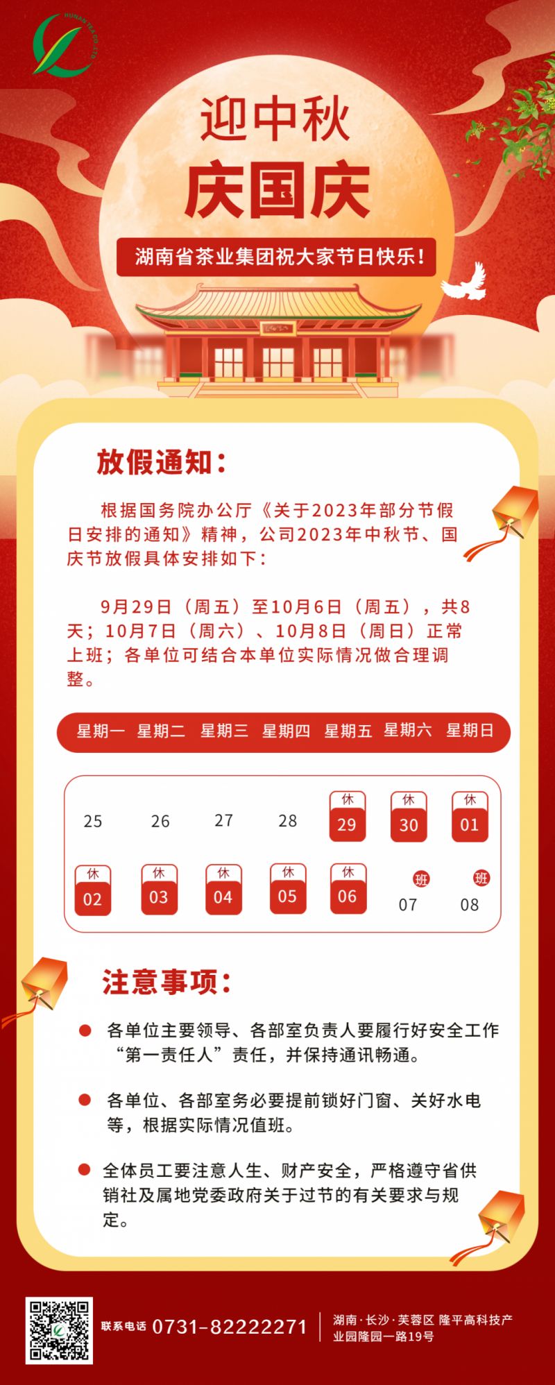 迎中秋、慶國慶,湖南省茶業集團祝大家雙節快樂!