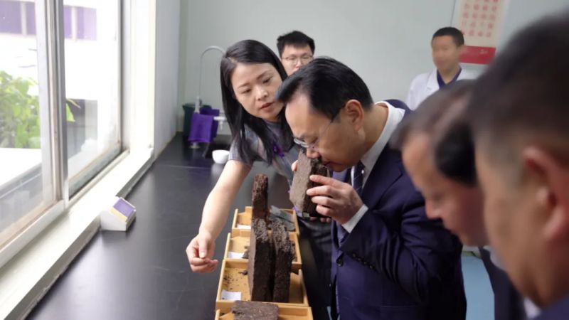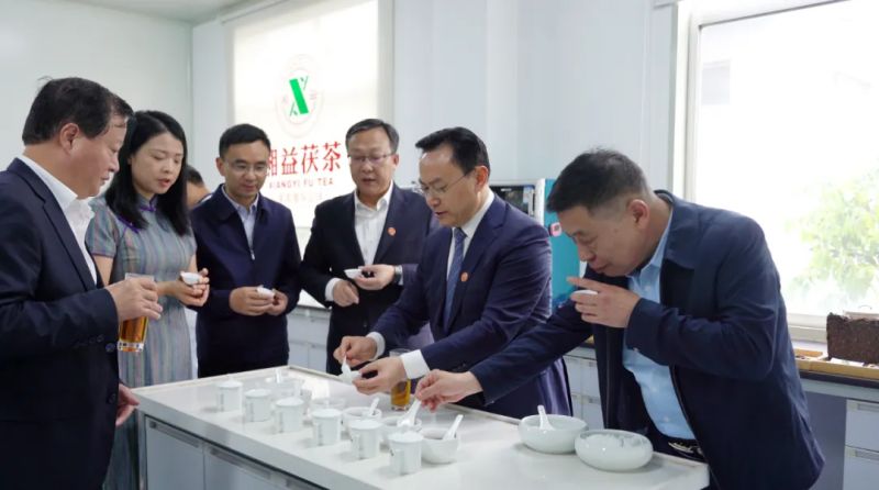 劉仲華院士對(duì)湘益茯茶有著深厚的感情,他在茯茶金花的保健功能發(fā)掘與深度研究方面,很多研究標(biāo)本都是湘益茯茶。此次參觀,劉院士第一時(shí)間就在益陽(yáng)茶廠總經(jīng)理余智勇和首席專家、國(guó)家級(jí)茯磚茶制作技藝非遺傳承人劉杏益的陪同下來到審評(píng)室,對(duì)益陽(yáng)茶廠中華老字號(hào)紀(jì)念茯茶等產(chǎn)品進(jìn)行了審評(píng),對(duì)益陽(yáng)茶廠傳統(tǒng)工藝與現(xiàn)代科技相結(jié)合而造就獨(dú)特湘益風(fēng)味的產(chǎn)品給予了高度評(píng)價(jià),并希望益陽(yáng)茶廠科技與文化聯(lián)動(dòng)、創(chuàng)新發(fā)展具有悠久歷史的茯磚茶,引領(lǐng)茯磚茶走創(chuàng)新發(fā)展之路。