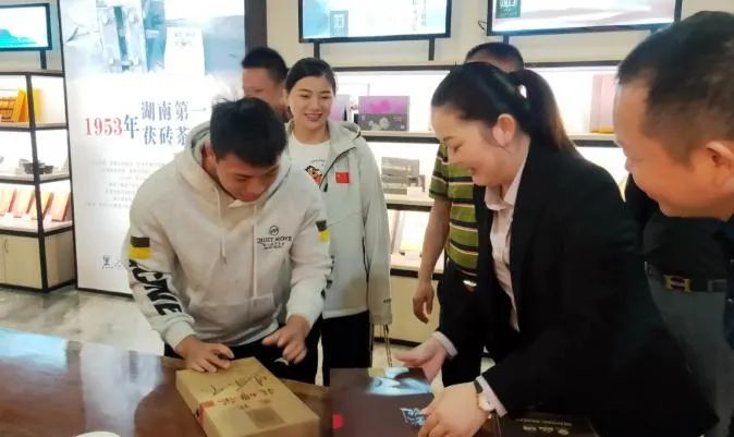 奧運(yùn)冠軍諶利軍在講解員的帶領(lǐng)下參觀了白沙溪黑茶文化博物館、了解安化黑茶名片白沙溪品牌故事文化。接著參觀了千兩茶晾曬場、沿江風(fēng)光帶、白沙溪文化長廊、白沙溪古茶園、白沙溪茶碼頭。在千兩茶晾曬場,興致地為白沙溪千兩茶簽名,隨后在黑茶體驗(yàn)中心進(jìn)行了簡短的座談交流。