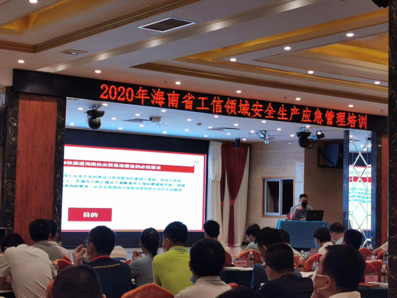 李進教授向參訓成員詳細講解了海南省危險化學品安全知識及安全提升行動方案,趙高工普及了海南省2020年消防管理形勢與對策,楊專家展示了危險化學品的安全使用和隱患排查,陳副處長分析了海南省工信領域2020年安全生產形勢及主要工作;最后,其他參會單位講師依次上臺發言,講解相關安全知識。