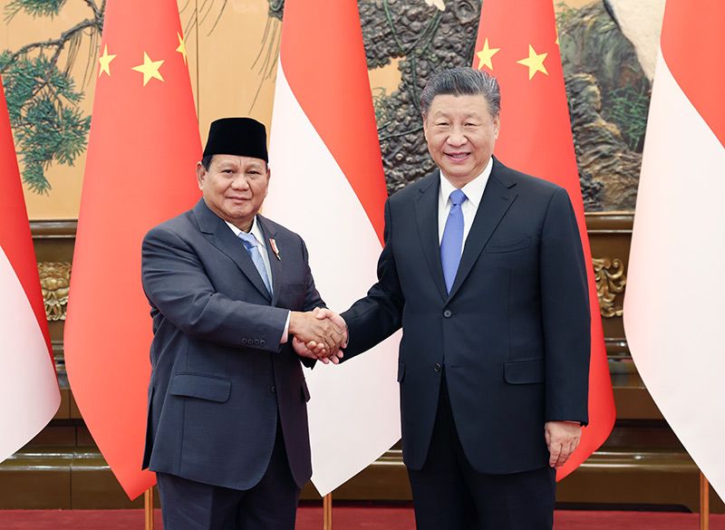 4月1日下午,國家主席習(xí)近平在北京人民大會(huì)堂同印尼當(dāng)選總統(tǒng)普拉博沃舉行會(huì)談。新華社記者 劉彬 攝