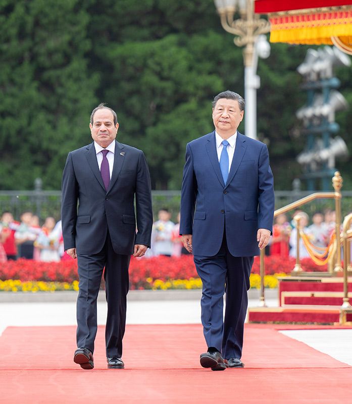 塞西表示,很高興來華進(jìn)行國事訪問并出席中阿合作論壇第十屆部長(zhǎng)級(jí)會(huì)議開幕式。當(dāng)前世界正處于深刻復(fù)雜變化之中,中東地區(qū)深陷危機(jī)。埃方期待同中方進(jìn)一步深化全面戰(zhàn)略伙伴關(guān)系,努力促進(jìn)地區(qū)和平穩(wěn)定。埃方恪守一個(gè)中國原則,堅(jiān)定支持中方在涉臺(tái)、涉港、涉藏、人權(quán)等核心利益問題上的立場(chǎng),堅(jiān)定支持中國實(shí)現(xiàn)國家完全統(tǒng)一。埃方歡迎更多中國企業(yè)赴埃投資合作,助力埃及制造業(yè)發(fā)展和工業(yè)化進(jìn)程。希望以今年“埃中伙伴年”為契機(jī),密切人文交流,加強(qiáng)兩國在信息通訊、人工智能、新能源、糧食安全、金融等方面合作。埃方贊賞習(xí)近平主席提出的系列全球倡議,愿同中方密切多邊協(xié)作,為人類和平進(jìn)步作出積極貢獻(xiàn)。