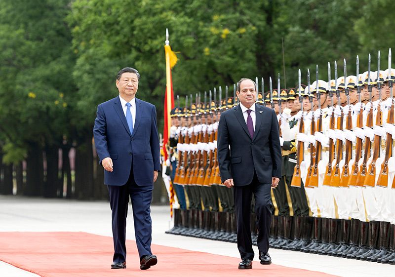5月29日下午,國家主席習(xí)近平在北京人民大會(huì)堂同來華出席中國-阿拉伯國家合作論壇第十屆部長(zhǎng)級(jí)會(huì)議開幕式并進(jìn)行國事訪問的埃及總統(tǒng)塞西舉行會(huì)談。這是會(huì)談前,習(xí)近平在人民大會(huì)堂東門外廣場(chǎng)為塞西舉行歡迎儀式。新華社記者 翟健嵐 攝